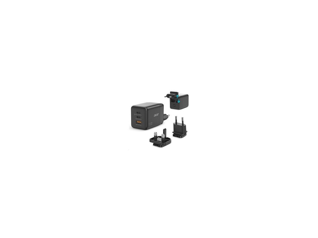 ACER Adaptér 100W GaN charger, 3porty: 2x USB-C + 1x USB-A ports, EU a UK zástrčka, textilní obal, black