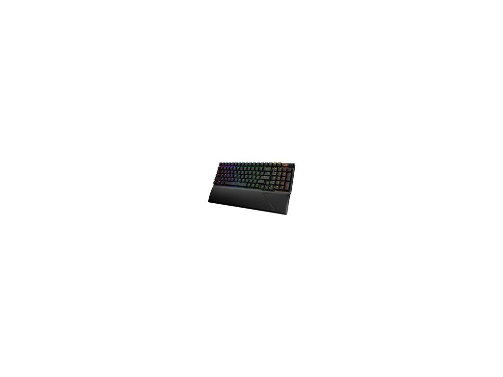 Herná klávesnica ROG Strix Scope II X s mechanickými spínačmi ROG NX V2 s možnosťou výmeny počas prevádzky, penovým tlmením hluku, zdvojenými klávesami PBT alebo ABS s UV povlakom, streamovacími klávesmi, multifunkčnými ovládacími prvkami, tromi regiónmi sklonu a opierkou zápästia.
