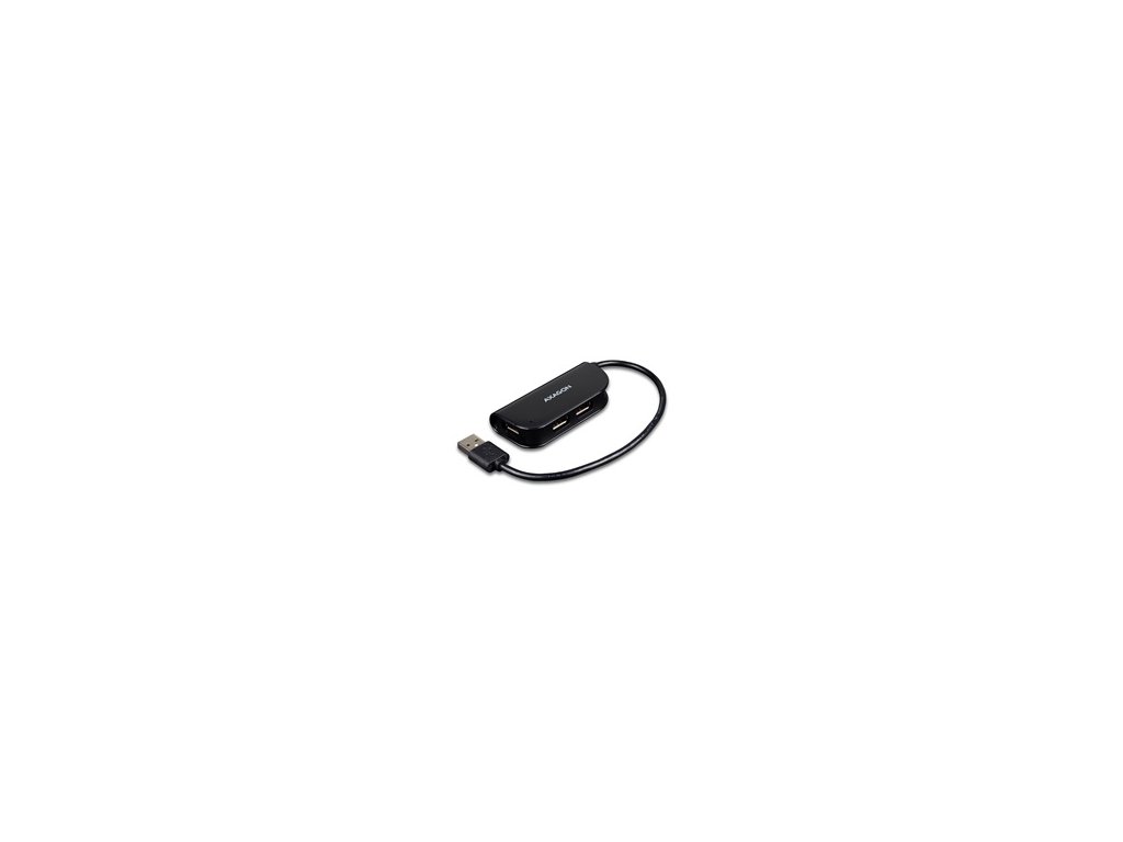 Štyri porty USB 2.0 READY hub AXAGO HUE-X4B s pevným káblom USB.