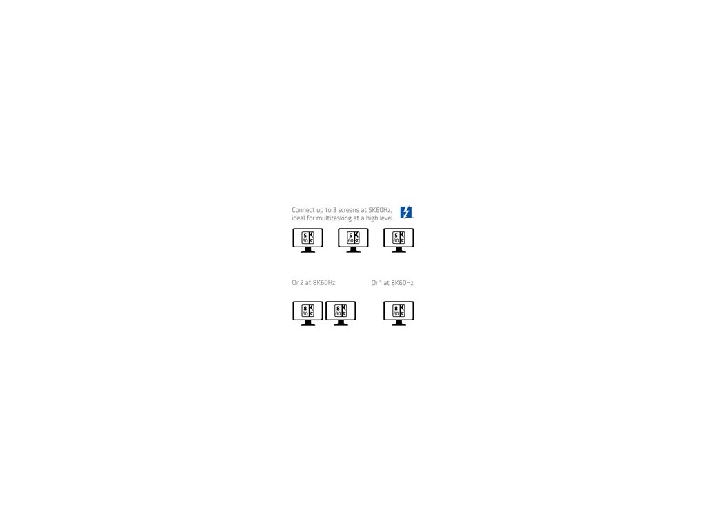 | Rozlíšenie | 8K60Hz, 3x 5K60Hz, 3x 4K144Hz |