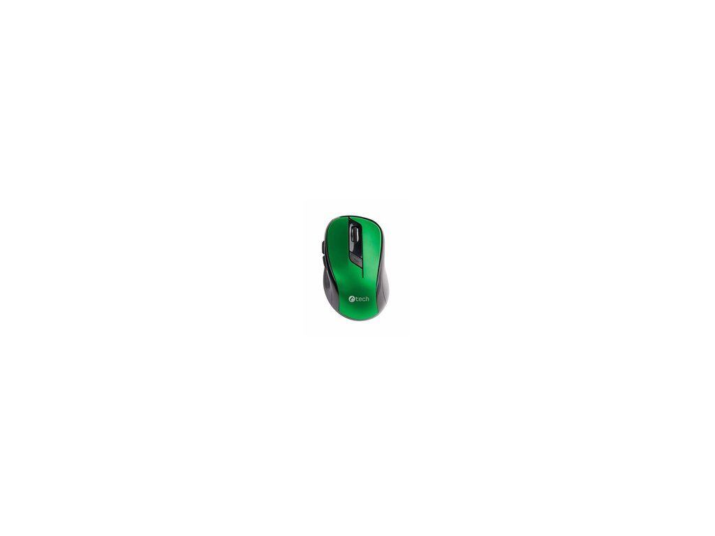 Myš C-TECH WLM-02, čierno-zelená, bezdrôtová, 1600DPI, 6 tlačidiel, USB nano prijímač