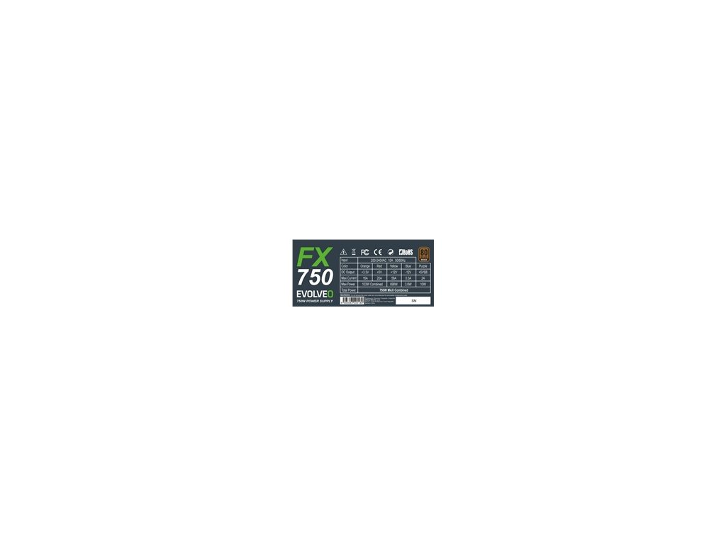 EVOLVEO FX 750 , zdroj 750W ATX, 14cm, tichý, 80+ bronze, bulk, záruka 3 roky