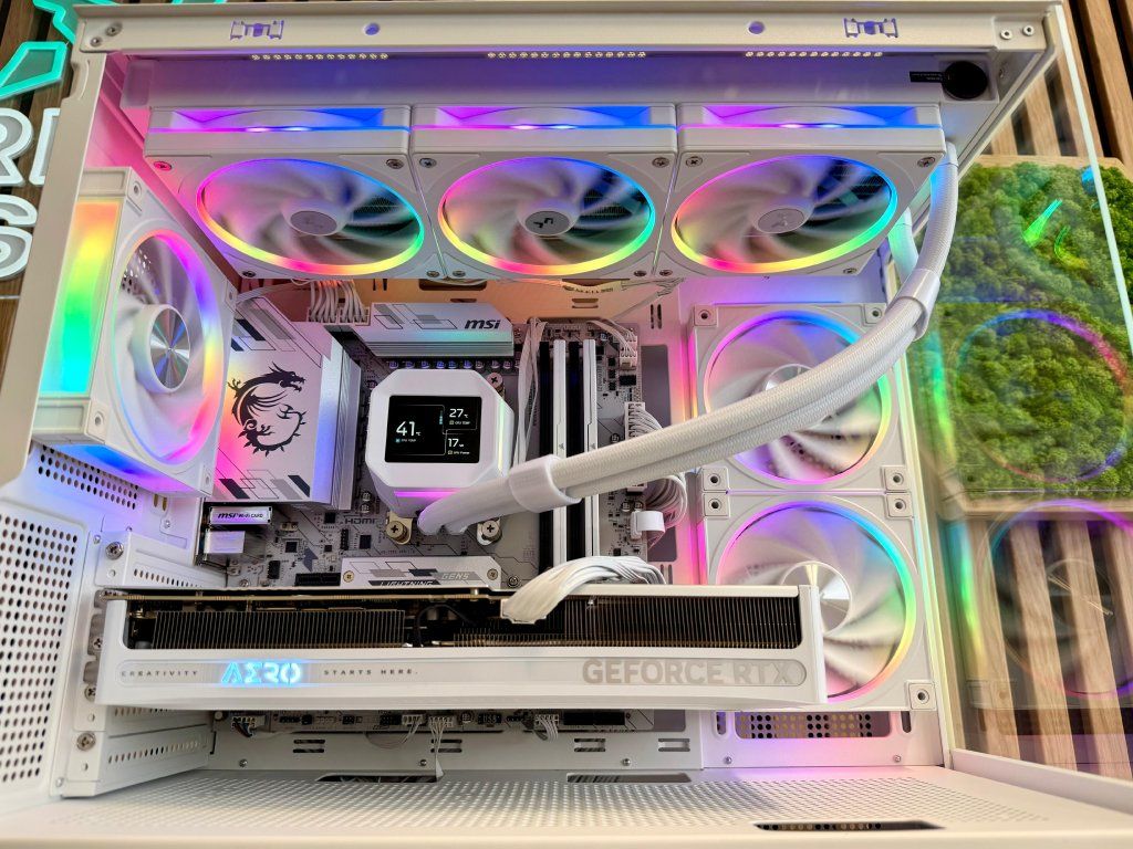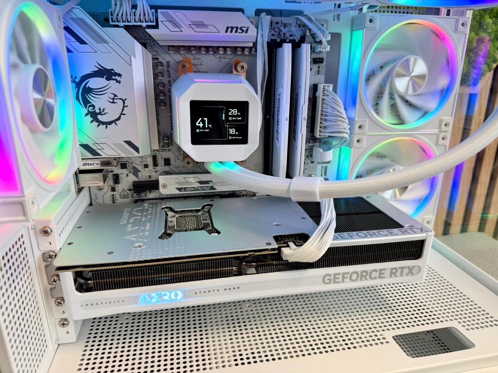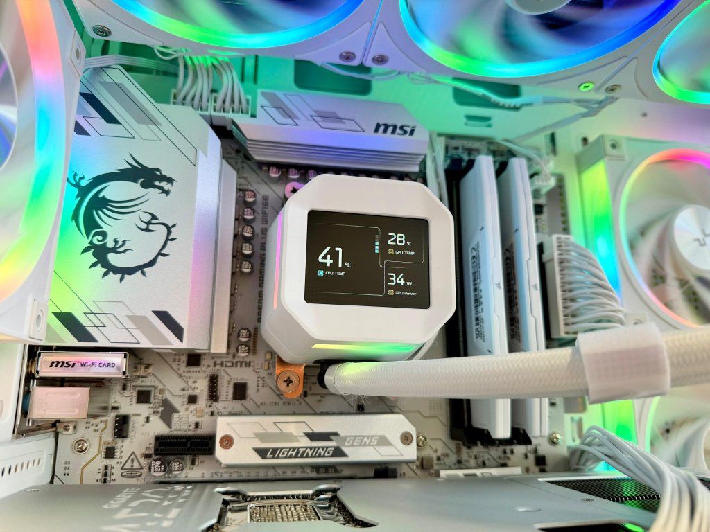 Vodné bez údržbové 360mm (3x120mm) ARGB chladenie s krásnym LCD ktorý vám zobrazuje aktuálnu teplotu procesora a grafiky a taktiež aj prípadnú spotrebu/využitie.