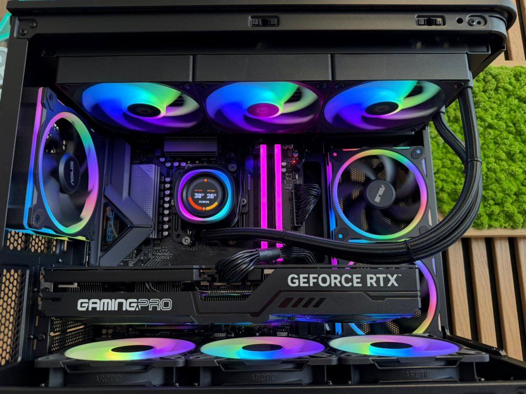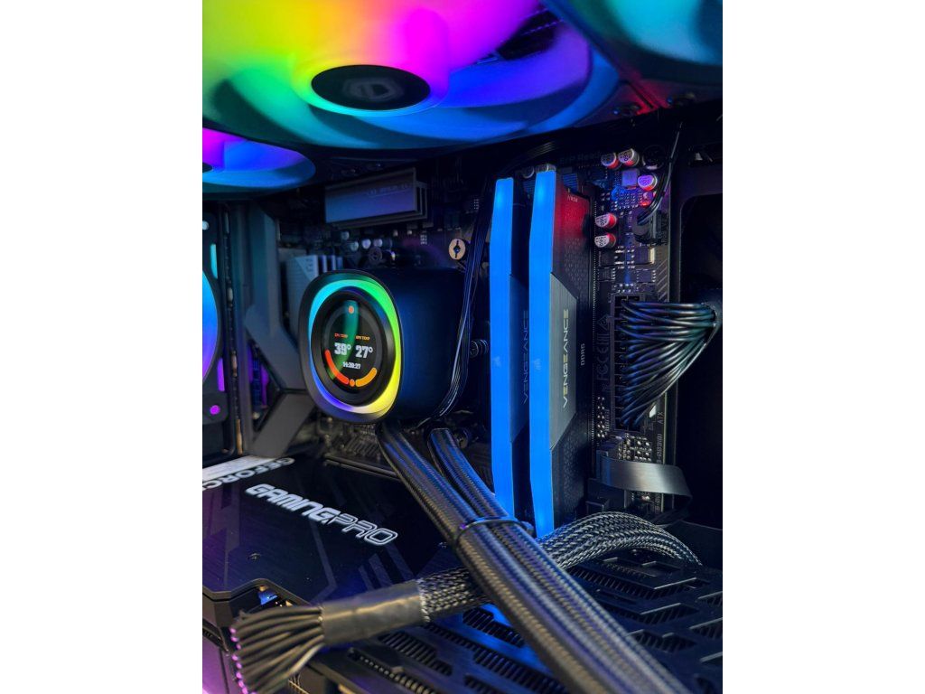 Vodné bez údržbové 360mm (3x120mm) ARGB chladenie s LCD displejom ktorý zobrazuje aktuálne teploty Procesora a Grafickej karty + možnosť nastaviť rôzne iné módy ako je GIF a podobne.