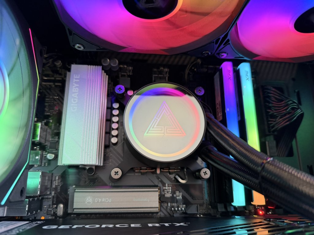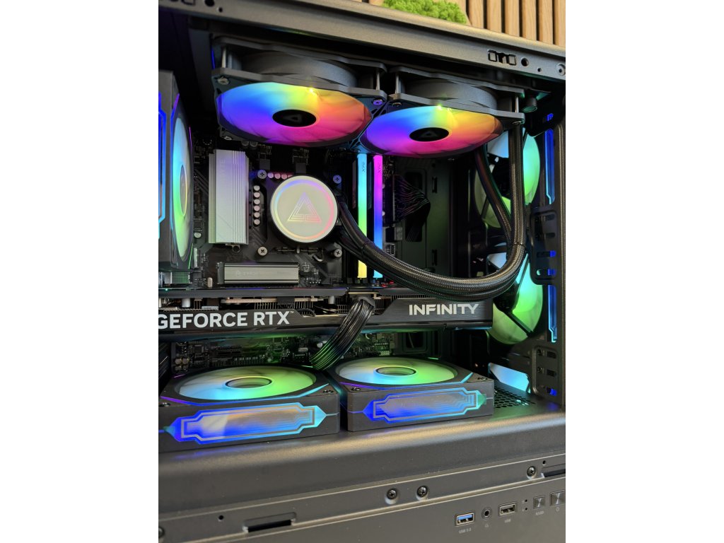 Vodné 2x120mm bez údržbové ARGB chladenie. Teploty procesora nepresahujú viac ako 68°C