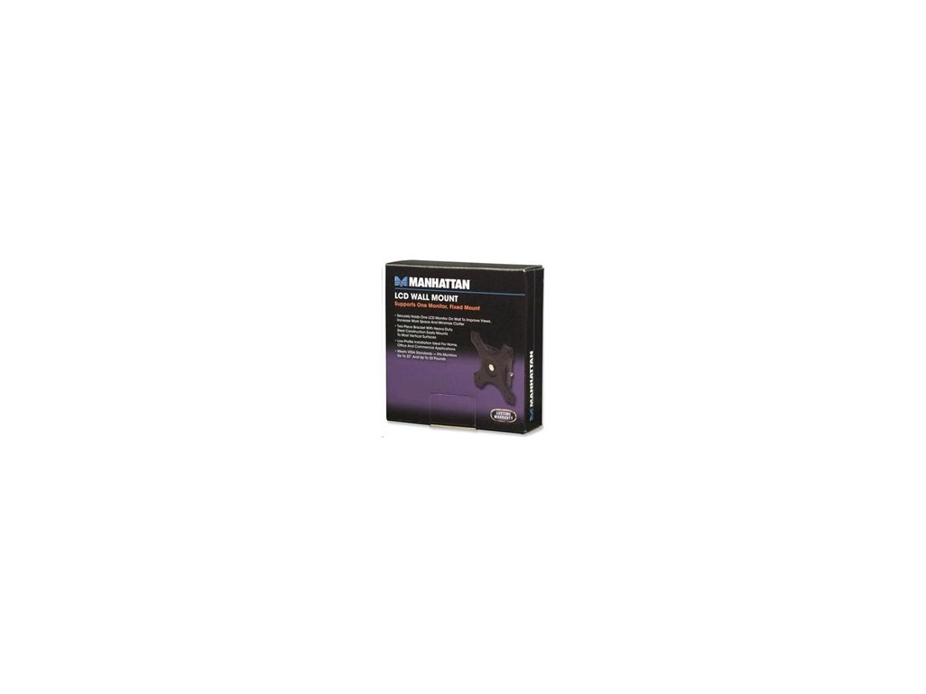 Držiak LCD MANHATTAN sa používa na upevnenie panela LCD na stenu. Odolná kovová konštrukcia a dvojdielny držiak umožňujú rýchle, jednoduché a bezpečné upevnenie na väčšinu zvislých povrchov. Držiak je kompatibilný so štandardom VESA a vďaka priloženému príslušenstvu je okamžite pripravený na inštaláciu. - Bezpečne udrží jeden LCD monitor na stene - Dvojdielny držiak s robustnou oceľovou konštrukciou sa ľahko pripevní na väčšinu zvislých povrchov - Nízkoprofilový dizajn je ideálny pre domáce, kancelárske a komerčné aplikácie - Spĺňa štandardy VESA 75 x 75 mm / 100 x 100 mm, pre monitory do veľkosti 22" - Max. 15 kg (33 libier)) - Rozmery konzoly: 7,6 x 7 cm; montážny priestor 12,7 cm; hmotnosť: 338 g Stručný návod na použitie (SK).