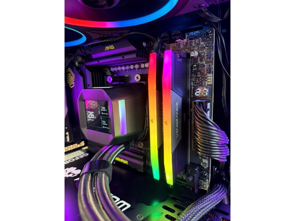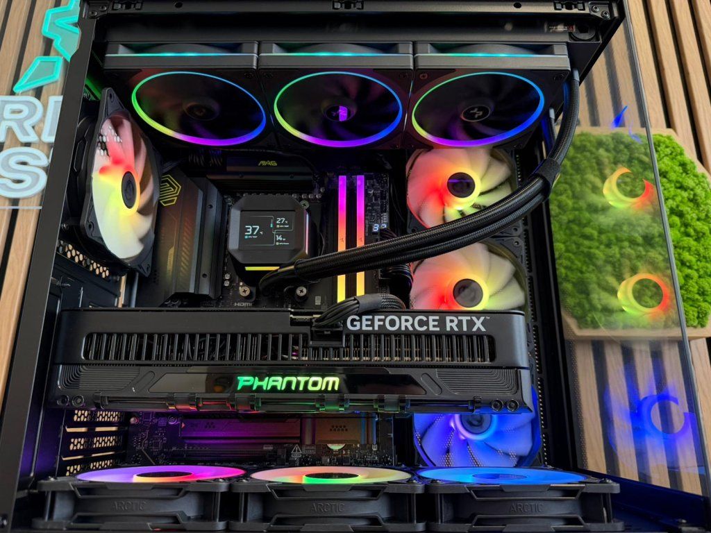 Vodné bez údržbové 360mm (3x120mm) ARGB chladenie s krásnym LCD ktorý vám zobrazuje aktuálnu teplotu procesora a grafiky a taktiež aj prípadnú spotrebu/využitie.