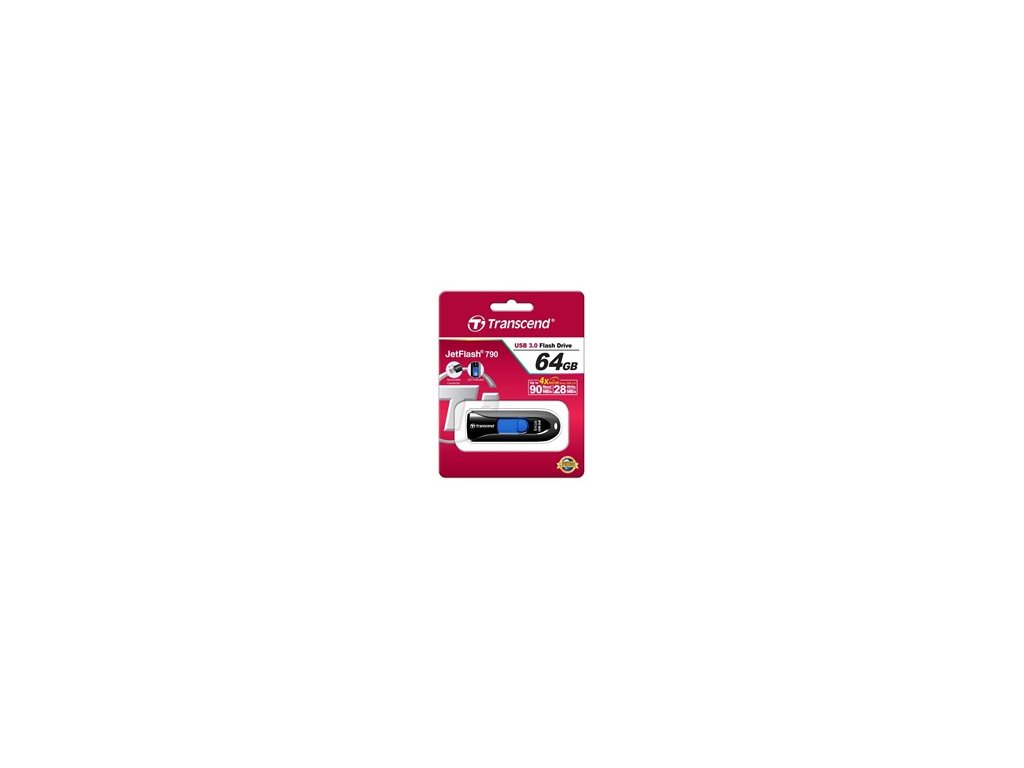 TRANSCEND Flash disk 64GB JetFlash®790, USB 3.1 (R:90/W:30 MB/s) čierna/modrá
